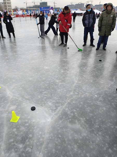 運動會設置了冰球射擊、雪圈投擲、冰車大作戰(zhàn)、冰壺撞擊、抽冰陀螺5個項目,形式簡單、易于參與、趣味性強?,F(xiàn)場,冰壺、冰球射門設施擺滿了整個場地,職工們躍躍欲試。運動會上,集團公司運動員不懼嚴寒,團結(jié)一致、相互鼓勵,充分享受著運動帶來的樂趣,也在運動中加深了對冰雪運動的熱愛與了解。