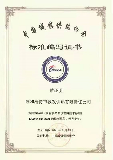 近日,集團(tuán)公司收到參與《長(zhǎng)輸供熱熱水管網(wǎng)技術(shù)標(biāo)準(zhǔn)》編寫證書。