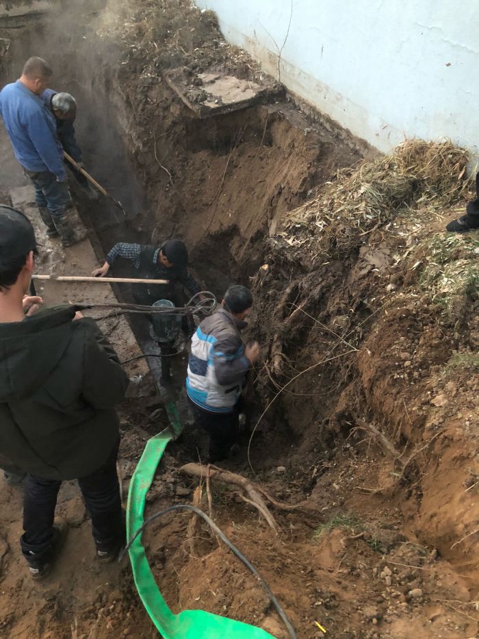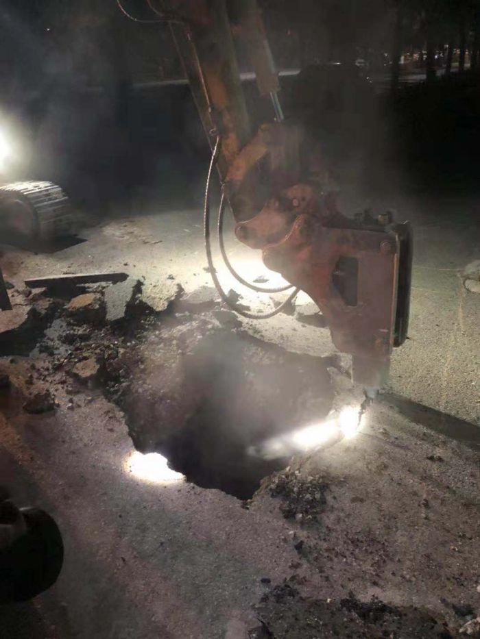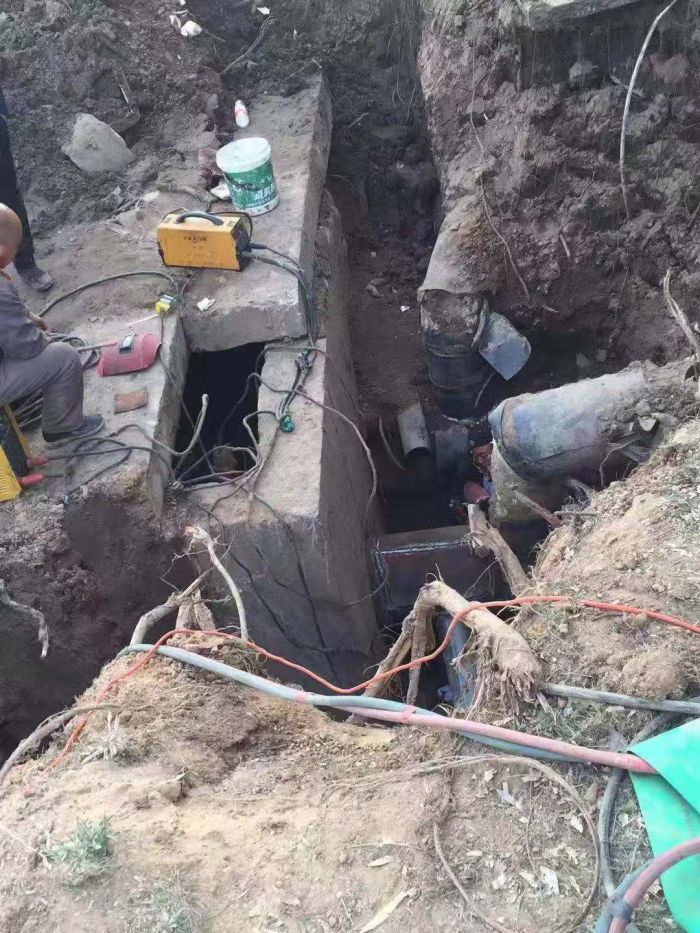 11月11日下午,中繼泵房專項高壓電閃落,1#、2#、3#循環(huán)泵因自動保護驟停。出現(xiàn)異常后,調(diào)度立即通知京能電廠降頻,檢修車間立即組織人員進行巡線,經(jīng)過15個小時不間斷排查,12日上午,發(fā)現(xiàn)如意舊網(wǎng)主線和1#站支線漏水嚴重。分公司檢修車間、運營二所和保駕護航單位迅速制定搶修方案組織搶修,經(jīng)理丁成斌、副經(jīng)理鄭紅飛親自到現(xiàn)場指導(dǎo)搶修工作。為準確找到失水點,搶修人員穿著隔熱服進入管溝內(nèi)查找漏點。由于漏水點管線錯綜復(fù)雜,施工難度非常大。接近管道時,發(fā)現(xiàn)漏點位置靠近井壁且管道腐蝕嚴重,壁厚較薄,采取整理外層補焊的方式進行修補。